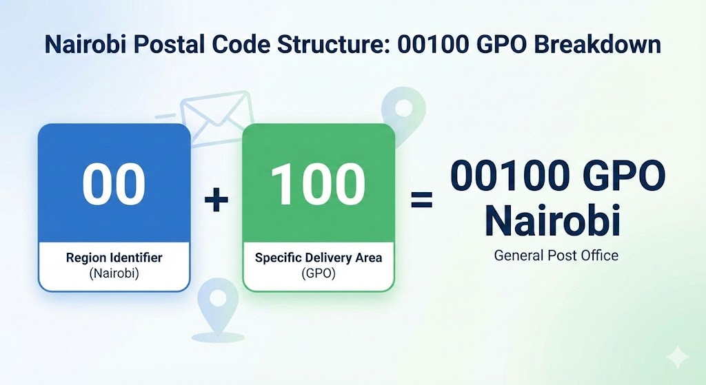 Every Nairobi postal code follows a simple 5-digit format: