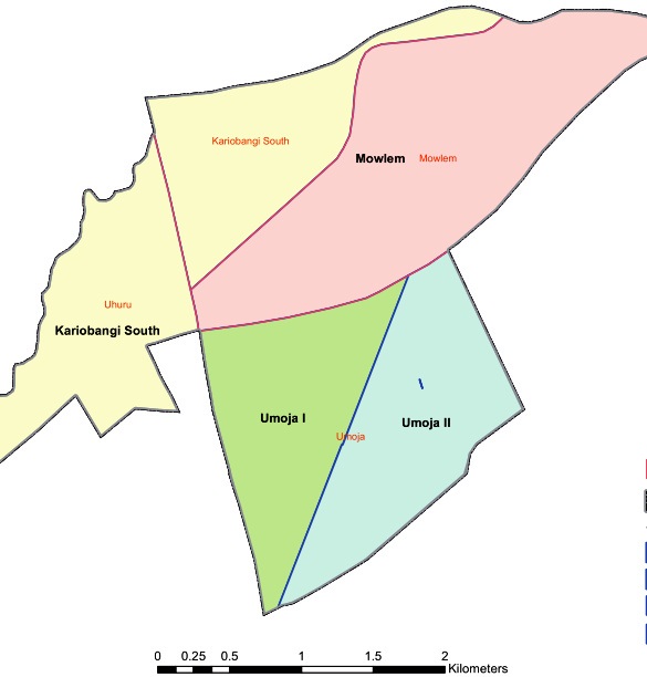 - Wards: Umoja I, Umoja II, Mowlem, Kariobangi South